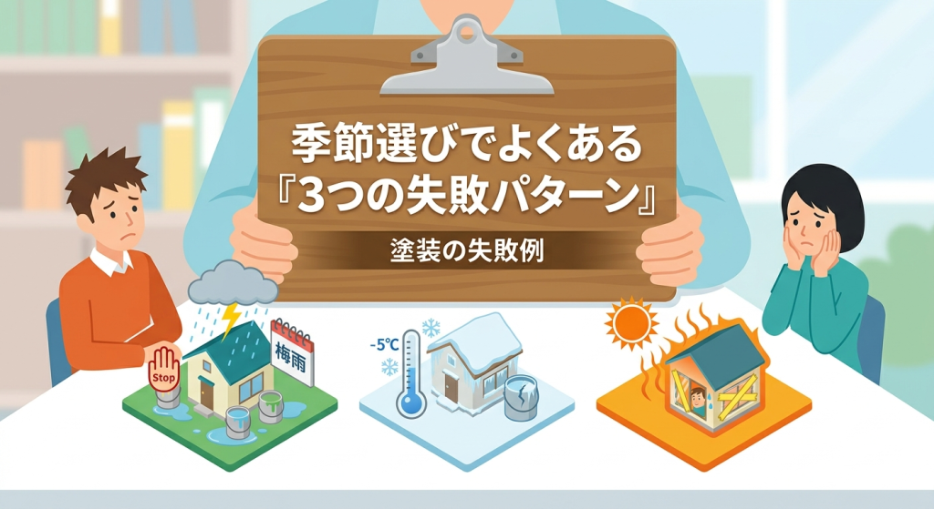 これらを無視して、繁忙期(春・秋)と同じスケジュールで強行突破すれば、数年後に必ず「剥がれ」や「膨れ」が起きます。読者が本当に警戒すべきなのは、季節そのものではなく、「季節による施工条件の変化を無視する業者の姿勢」です。