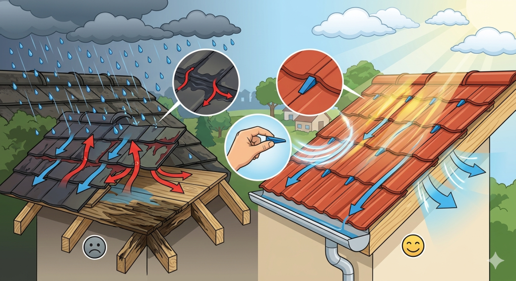 屋根塗装は「塗れば終わり」ではありません。水の逃げ道を確保して、はじめて完成です。